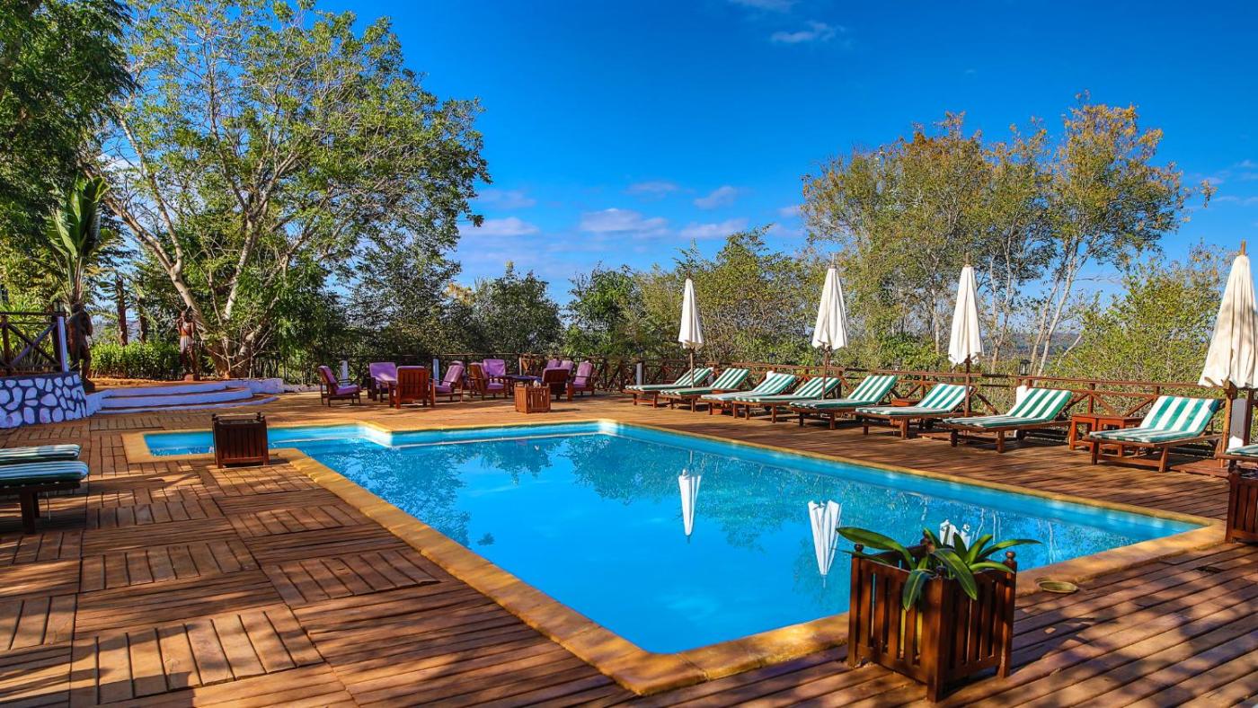 OLYMPE DE BEMARAHA features a garden, a shared lounge and a sun terrace with swimming pool and buffet breakfast in Bekopaka. There is a restaurant serving local cuisine, and free private parking is available.