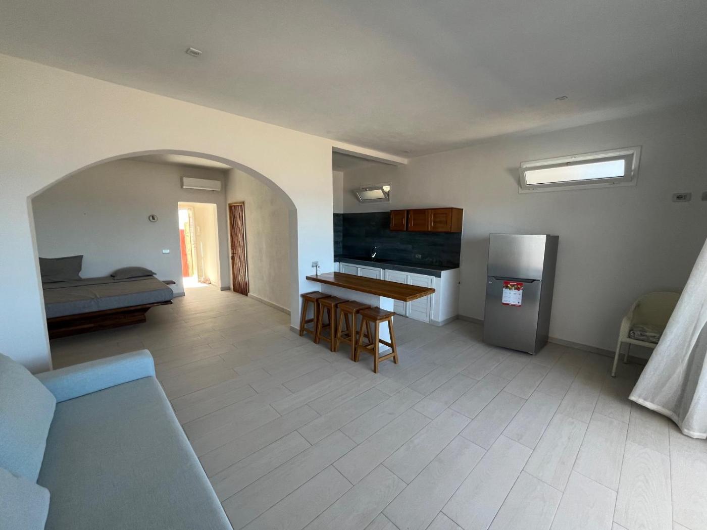 One-Bedroom Apartment. Featuring a private entrance, this air-conditioned apartment comprises 1 living room, 1 separate bedroom and 1 bathroom with a walk-in shower. The well-equipped kitchen has a stovetop, a refrigerator and kitchenware. The apartment features a tea and coffee maker, a seating area, a dining area as well as a terrace with sea views. The unit offers 2 beds.